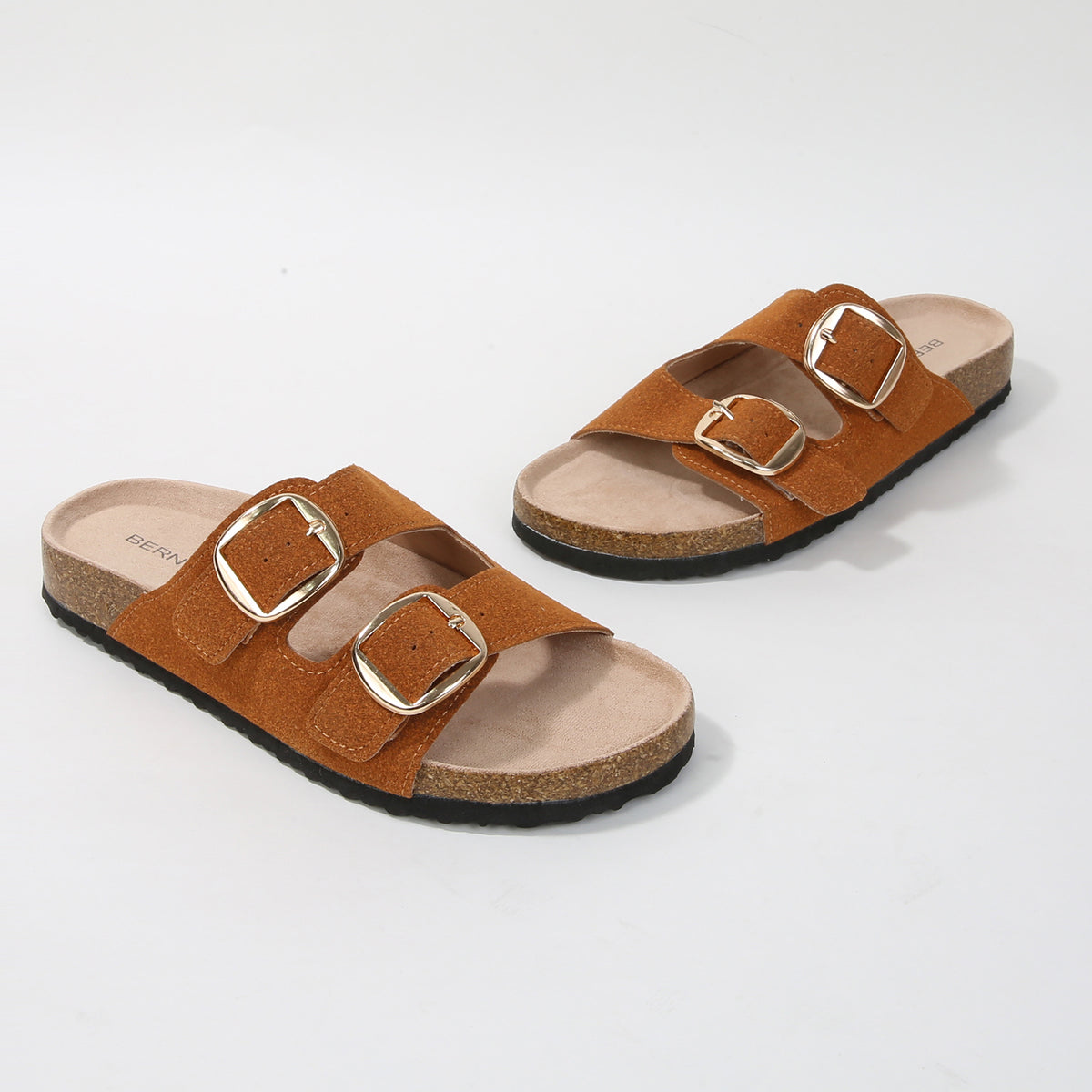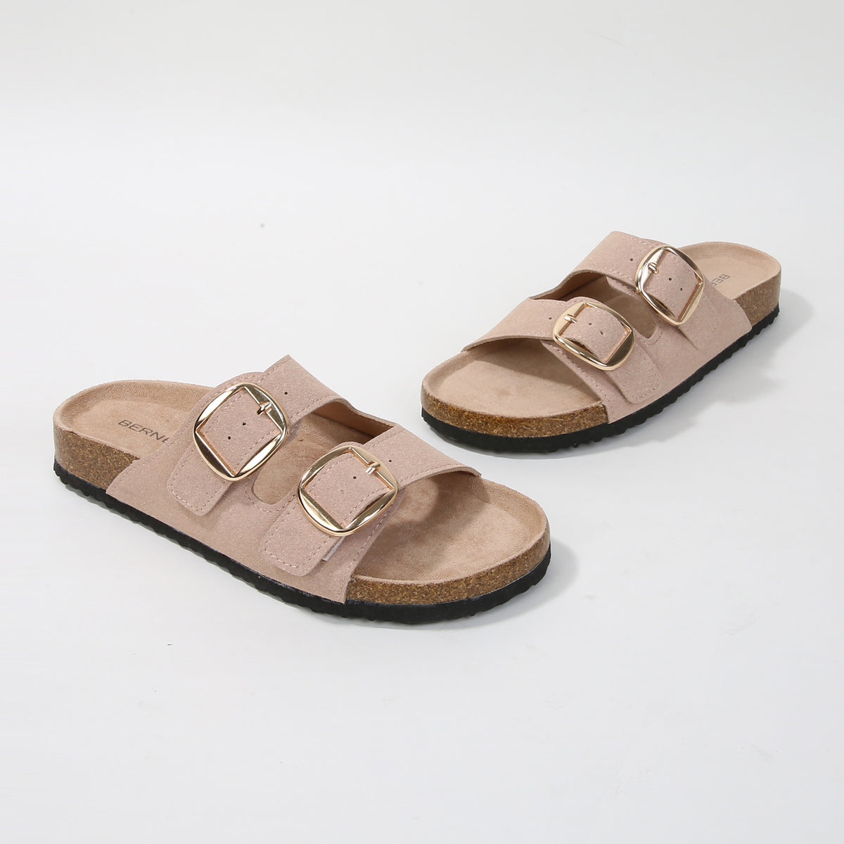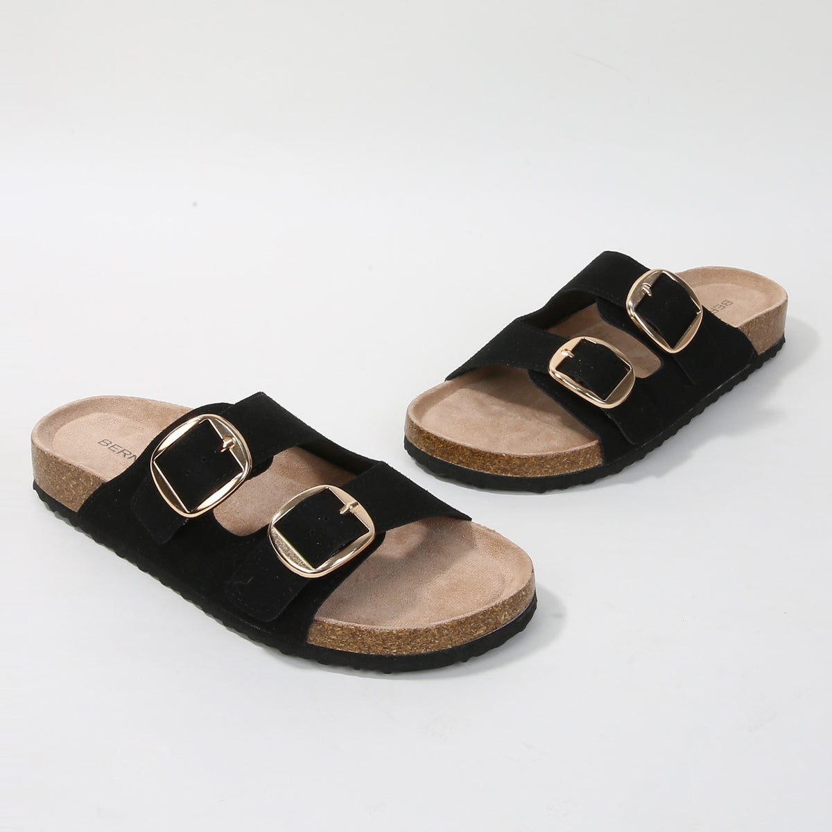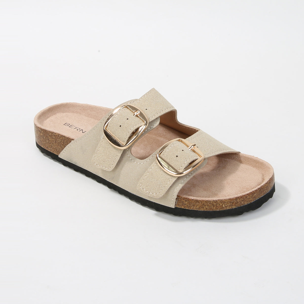 Effortlessly chic and endlessly comfortable, these slide sandals feature dual buckle straps and a contoured cork footbed that molds to your foot. A laid-back essential with a refined twist, perfect for everyday errands or casual getaways.