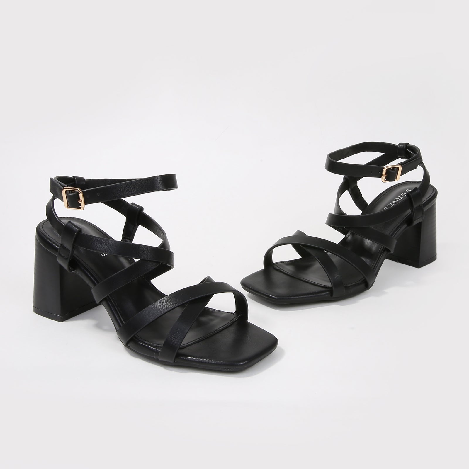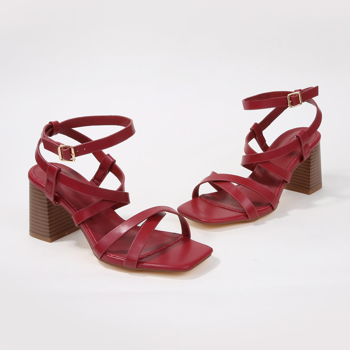 A sleek mix of modern minimalism and effortless charm. These strappy block heel sandals feature a chic ankle wrap and square toe design, a perfect balance of comfort and sophistication for any occasion.