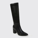 Designed with a sleek knee-high silhouette and a clean pointed toe, these block heel boots bring modern polish to everyday and dressier looks. Crafted in smooth faux leather, the streamlined design offers a refined finish while the sturdy block heel provides comfortable lift and confident wear from day to night. A versatile essential that transitions effortlessly from workdays to special occasions.