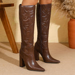 Antonella Western Knee-High Boots with Embroidered Stitching