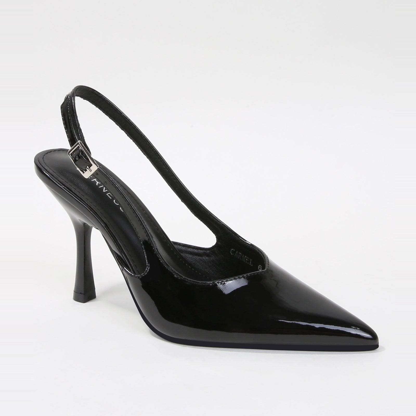 Carmel Patent Pointed Toe Stiletto Slingback Heels