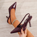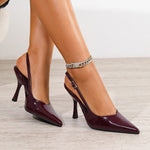 Sleek and sculpted, these slingback heels redefine modern elegance. Crafted in glossy patent vegan leather, they feature a sharp pointed toe and a slim stiletto heel that elongates your silhouette, perfect for office polish or evening sophistication.
