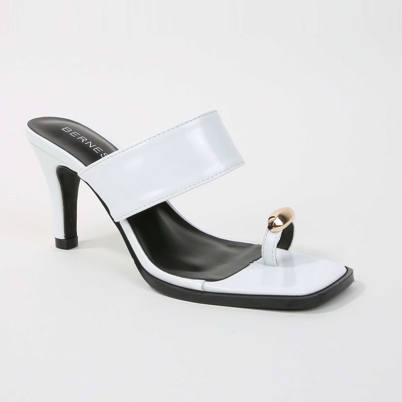 Catha Patent Wide Strap Slide Heels with Metallic Toe Ring