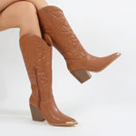 Kate Metal Toe Cap Western Boots with Stitch Detailing
