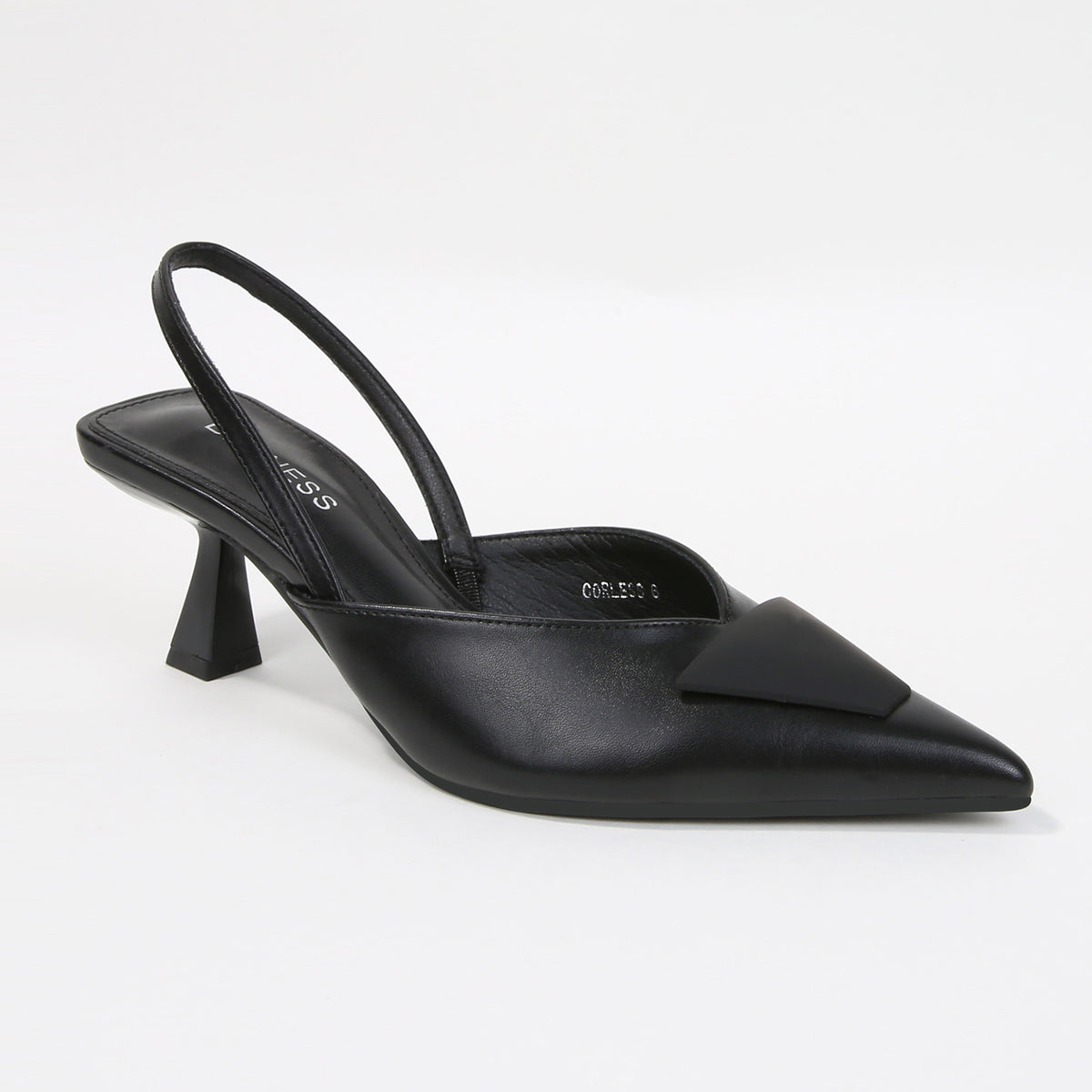 Corless Pointed Slingback Pump Heels with Trapezoid Accent