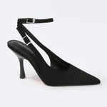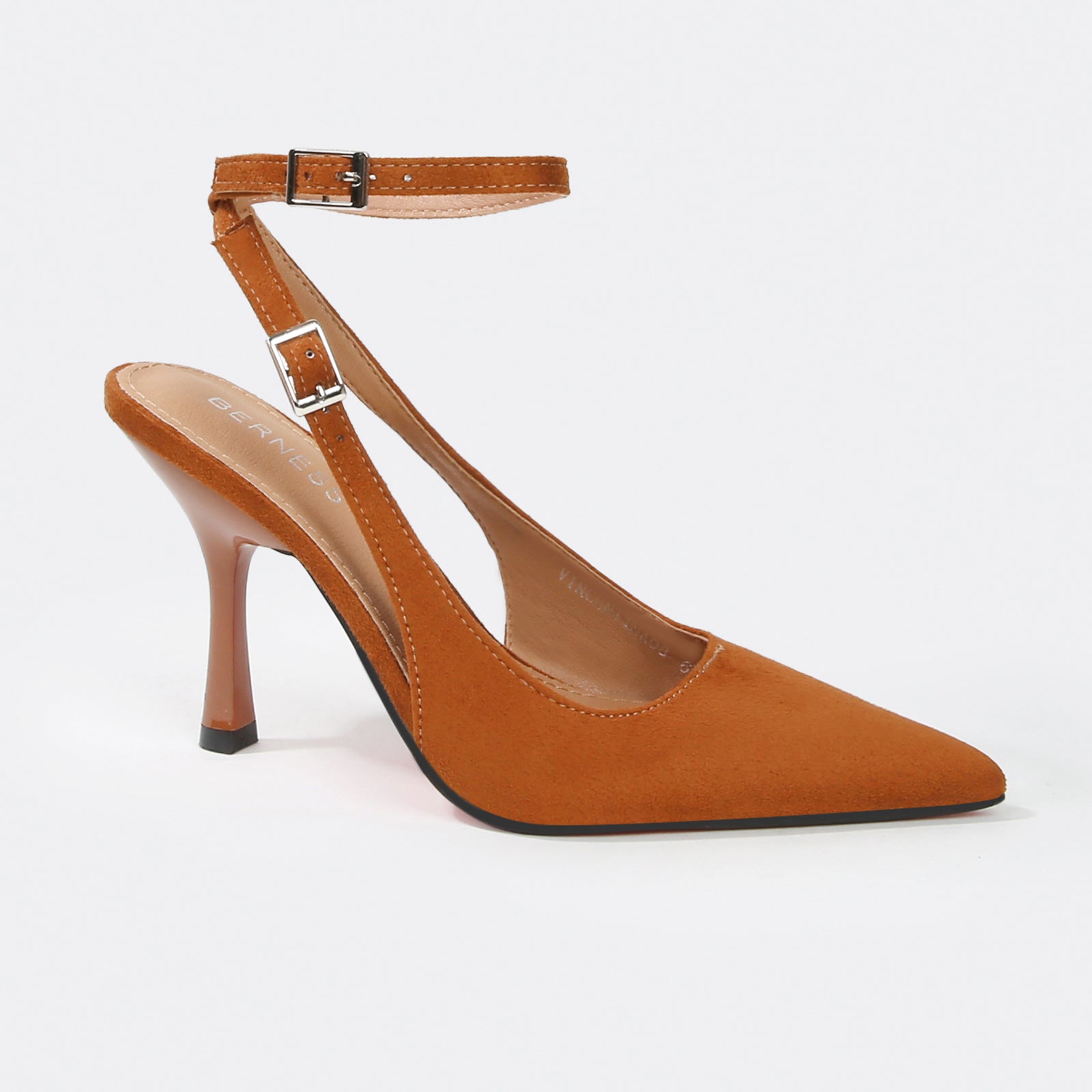 Elegant yet easy to wear, these faux suede slingback heels feature a pointed toe and an adjustable ankle strap for a flattering, secure fit. Finished with a sleek stiletto heel, this style is perfect for wedding celebrations, date nights, dinner parties, or a polished day at the office, effortlessly elevating everything from dresses to tailored trousers.