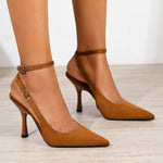 Vincentina Faux Suede Ankle Strap Slingback Heels