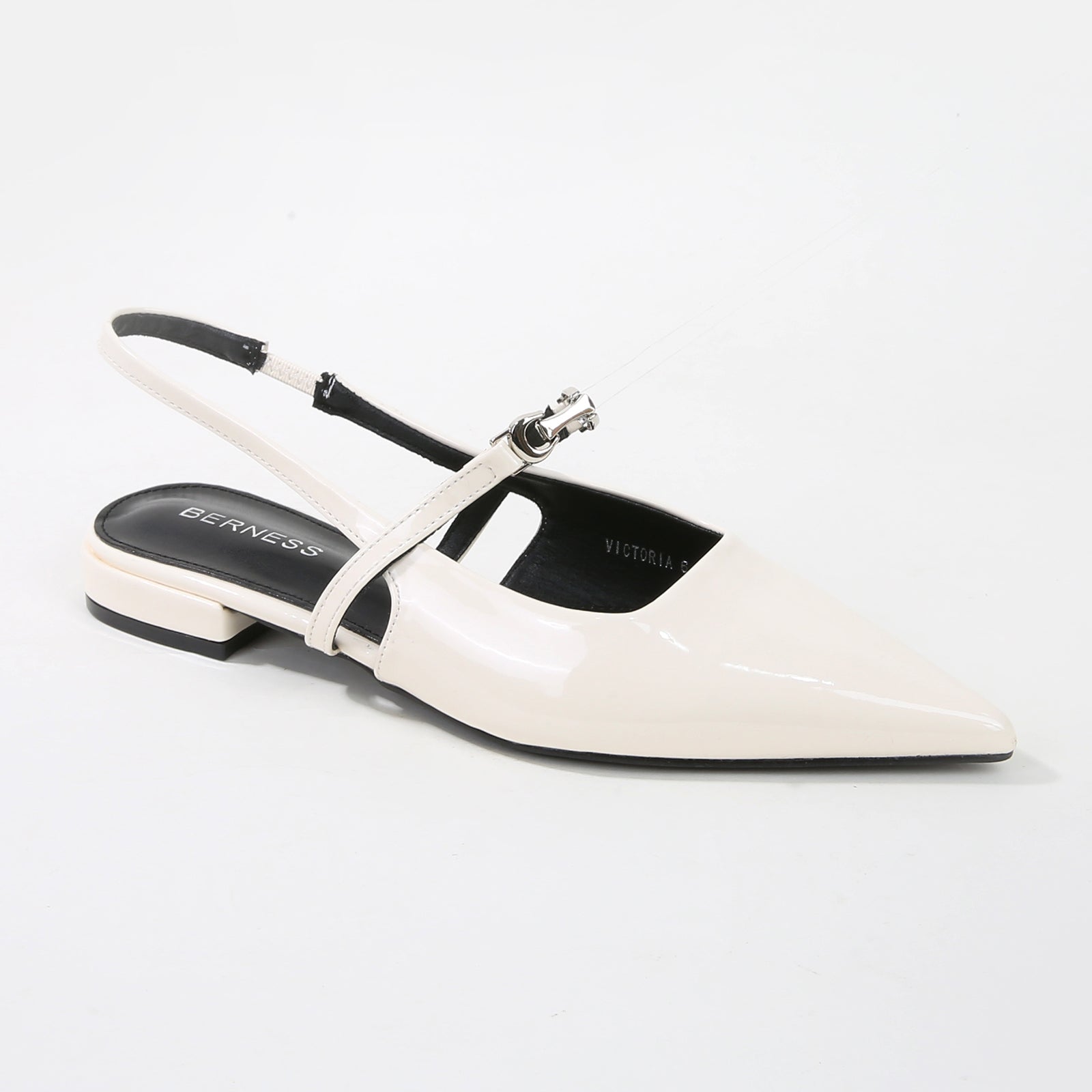 Victoria Patent Pointed Flats with Sleek Strap Detail