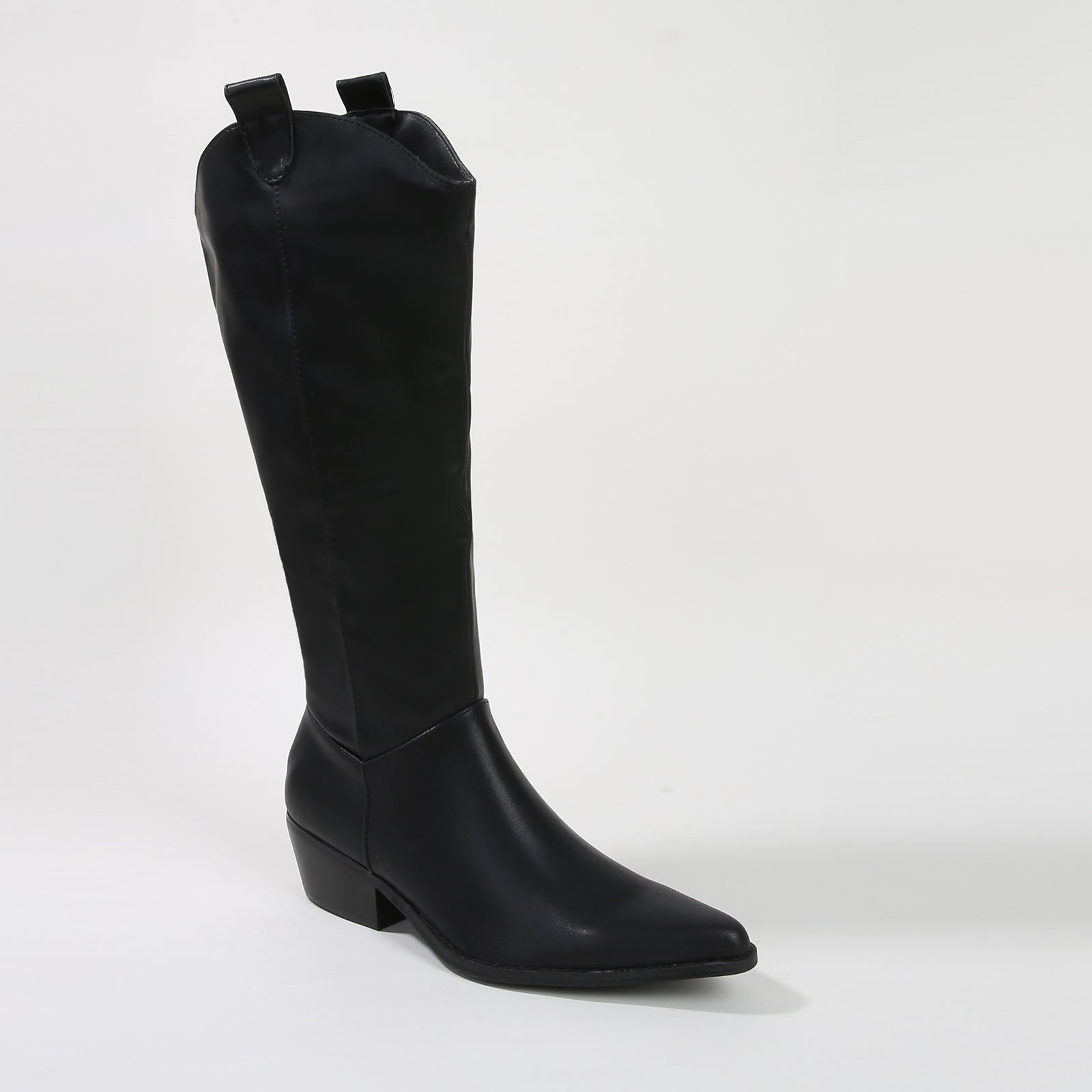Step into timeless style with these sleek Western mid-calf boots, blending classic cowboy elements with a modern, minimalist design. These boots offer a refined silhouette perfect for versatile styling. The smooth faux leather upper and subtle Western details make these boots a go-to choice for both casual and dressier occasions. Whether paired with jeans or a chic dress, these boots add an effortless, sophisticated edge to any outfit.