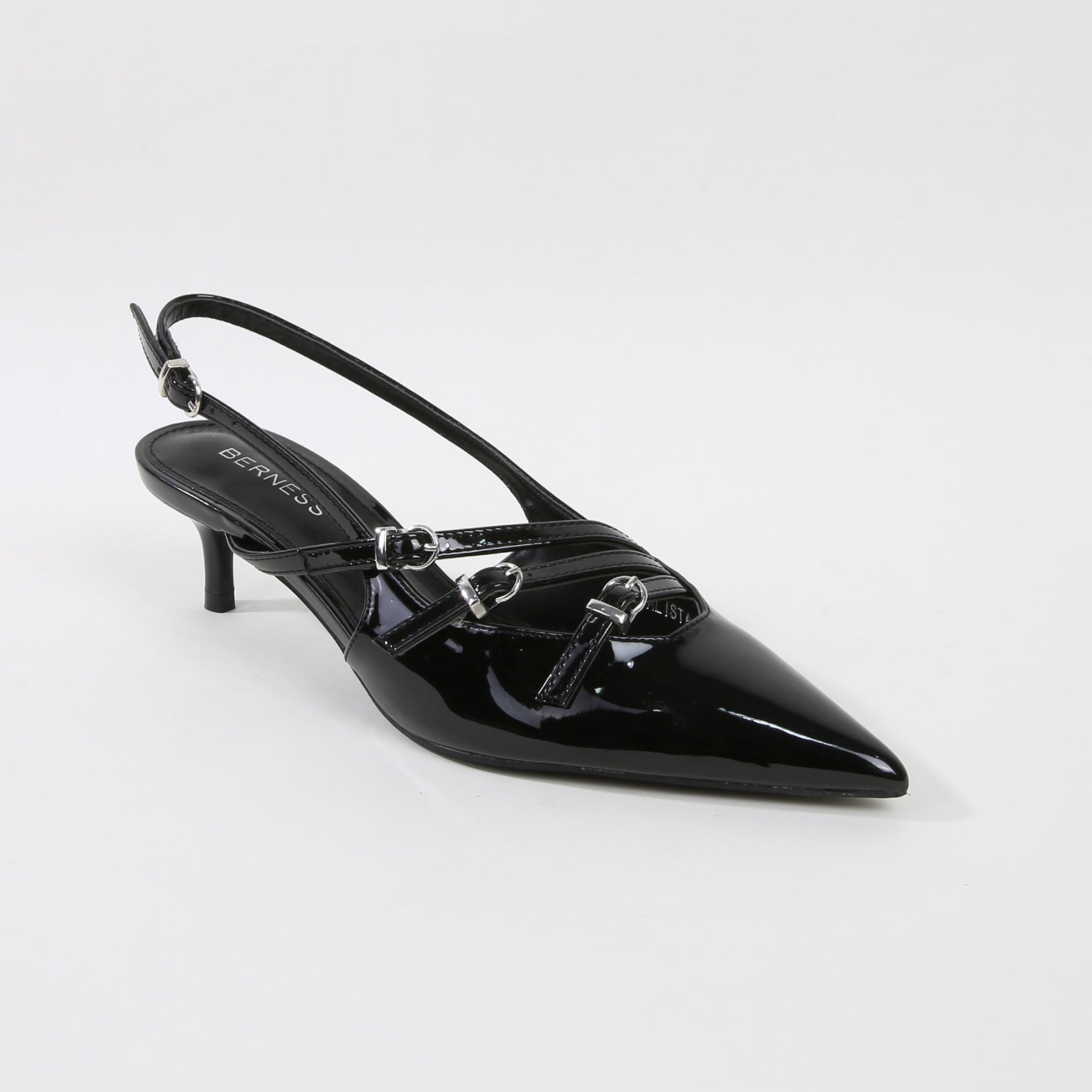 Calista Patent Leather Buckle Straps Slingback Kitten Heels