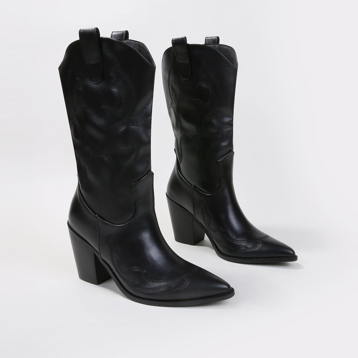 Make an entrance in these bold cowboy boots, featuring classic embroidered detailing and a pointed toe, these boots are the perfect blend of edgy and iconic. Ideal for concerts, parties, or spicing up everyday looks.