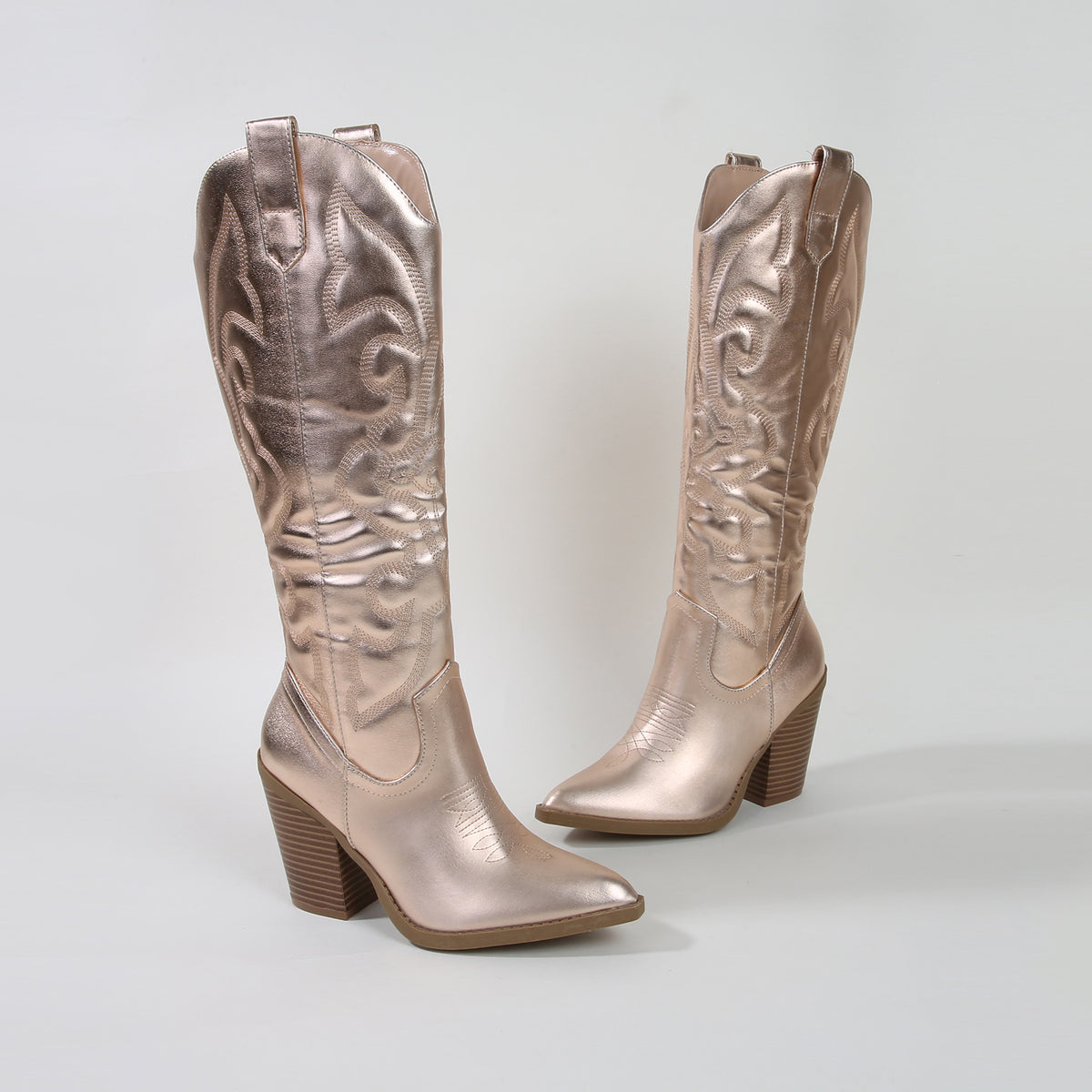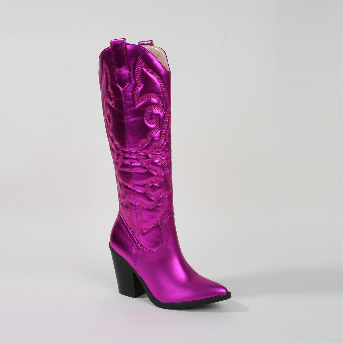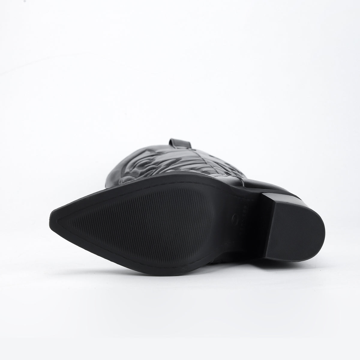 Step into classic Western style with Arizona Faux Leather Cowboy Western Boots, designed to combine rugged charm with a sleek, modern twist. Crafted with intricate tonal embroidery on a matte black upper, these boots offer the perfect blend of bold elegance and timeless appeal. Whether you're heading to a country concert, a festival, or simply want to add a touch of Western flair to your everyday outfits, these black embroidered cowboy boots are a must-have.