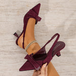 Calliope Faux Suede Bow Slingback Kitten Heels