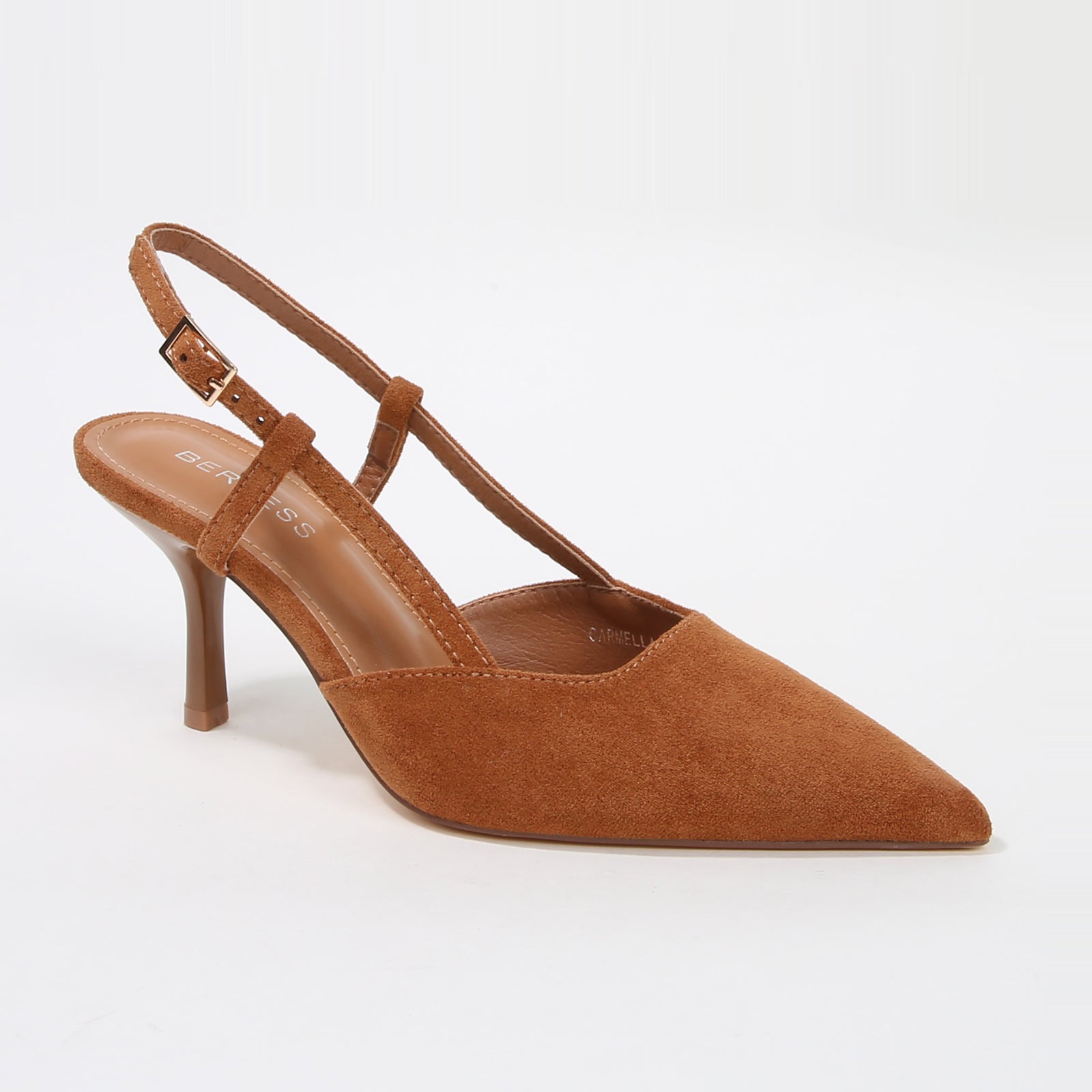 The Carmella stiletto pump is a masterclass in understated luxury. Crafted from premium faux suede, these heels feature a rich, matte texture that complements its sharp pointed-toe silhouette. Designed with elegant strap detailing and a secure fit, the Carmella is the ultimate choice for the modern woman seeking a sophisticated transition from the work office to evening soirées.