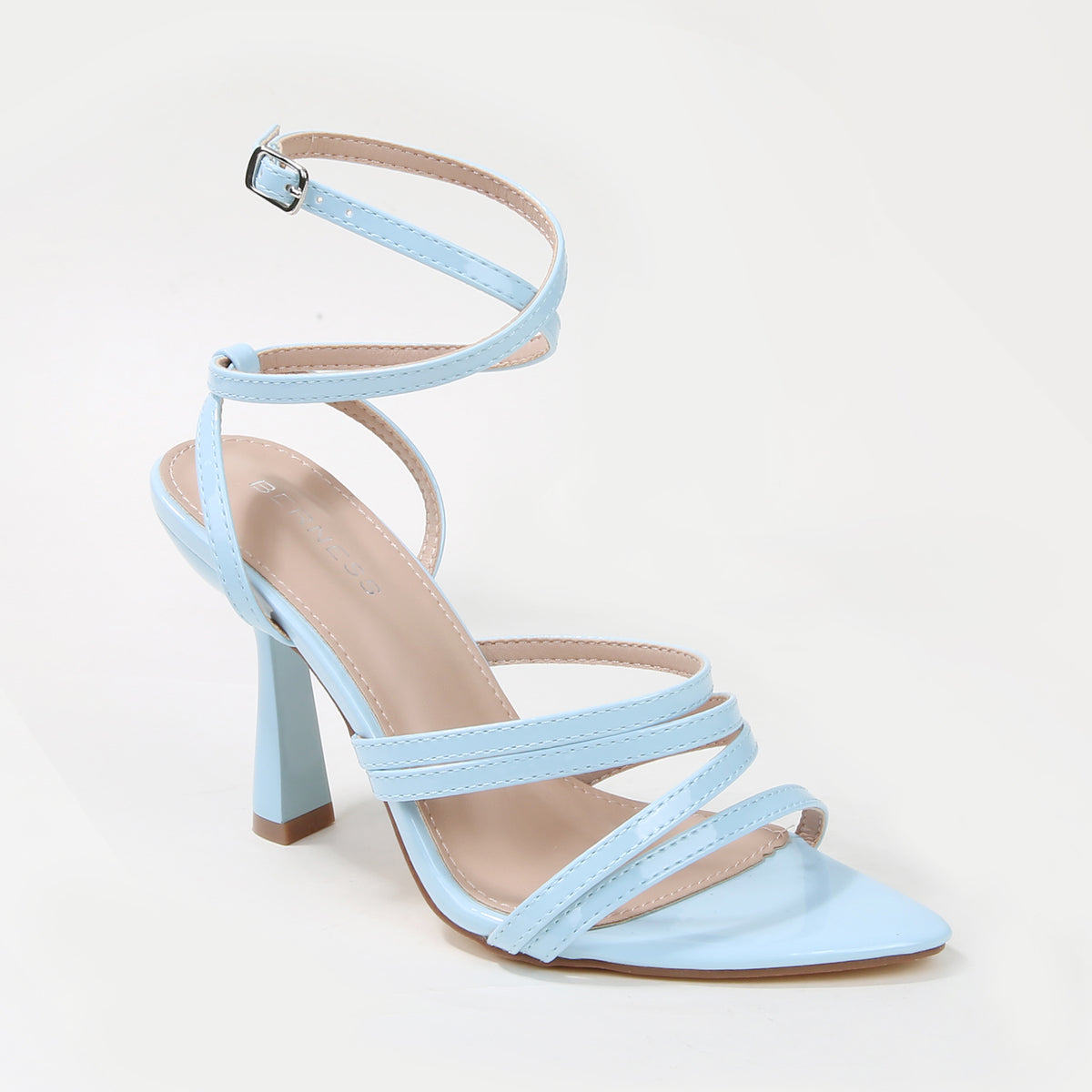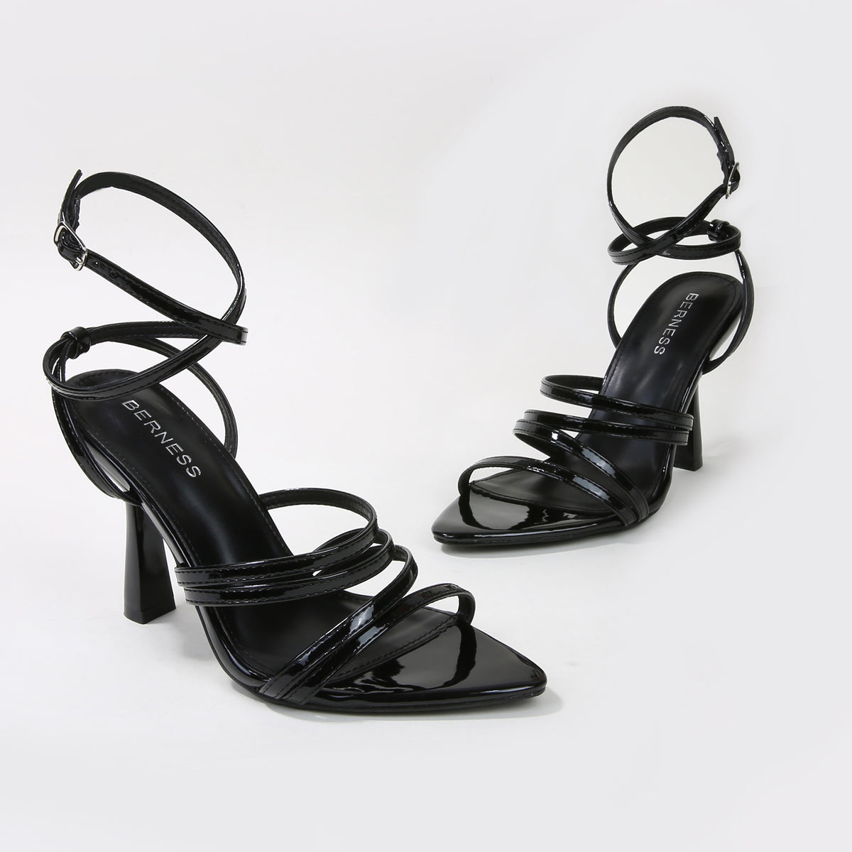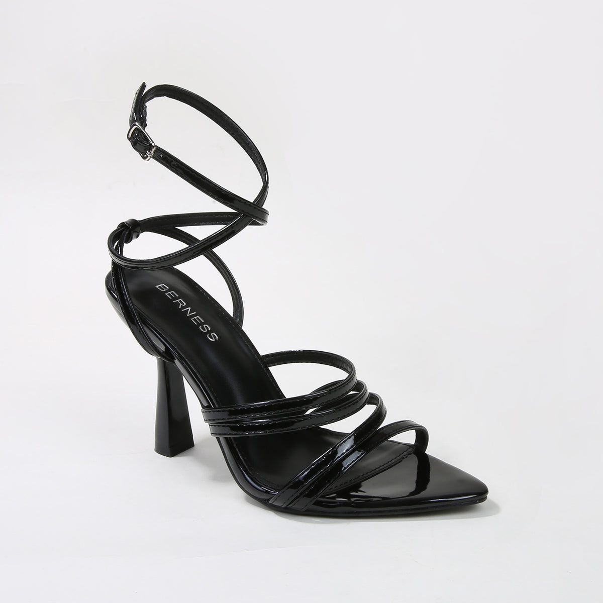 Polished and poised. These sleek stilettos feature glossy straps and a flattering wraparound ankle design that adds just the right edge to your look. A go-to pair for dressy nights or statement days.