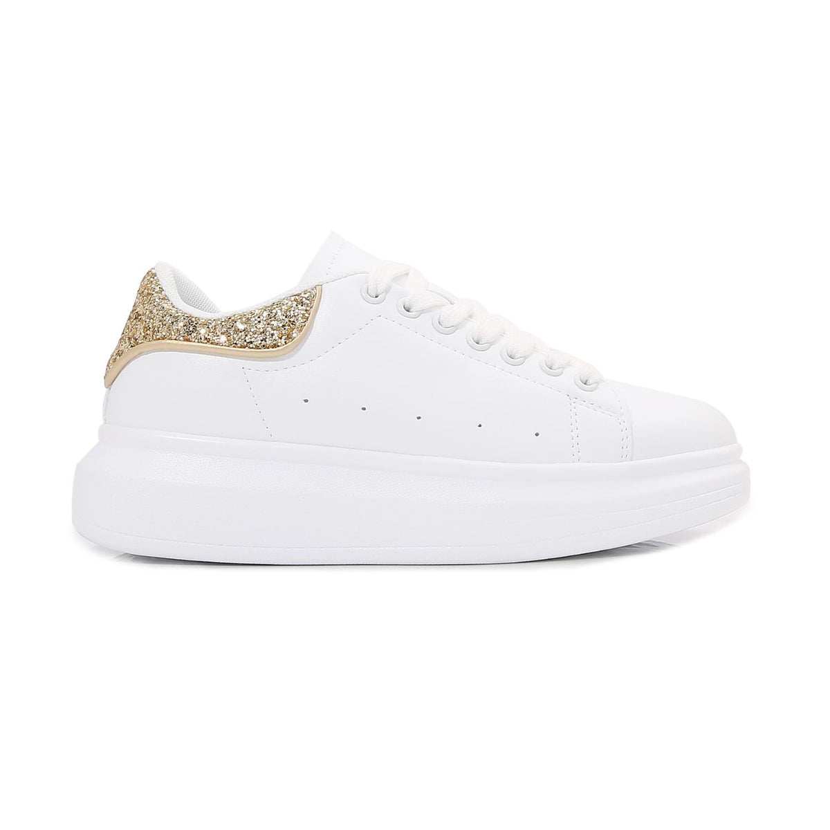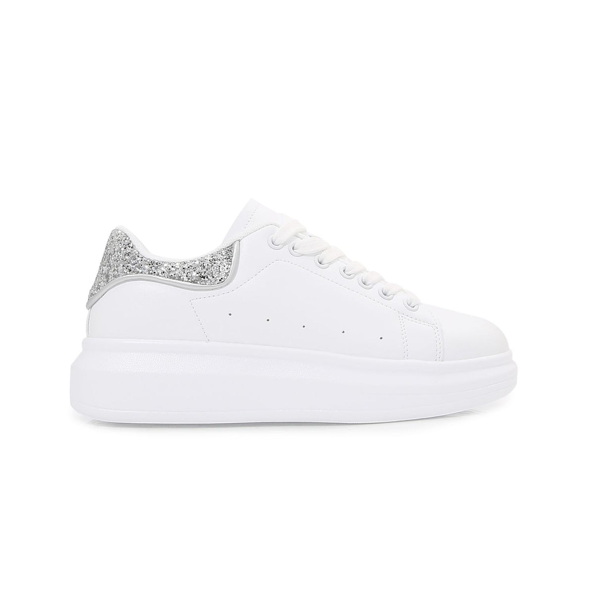 Elevate your casual wardrobe with the Classic White Sneakers with Glitter Sparkling Twist, offering a fresh take on timeless style. These sneakers feature a sleek all-white design, complemented by a silver or gold glitter heel accent for a playful yet sophisticated touch. Whether you're running errands or meeting friends, these sneakers effortlessly blend classic style with a sparkling twist.