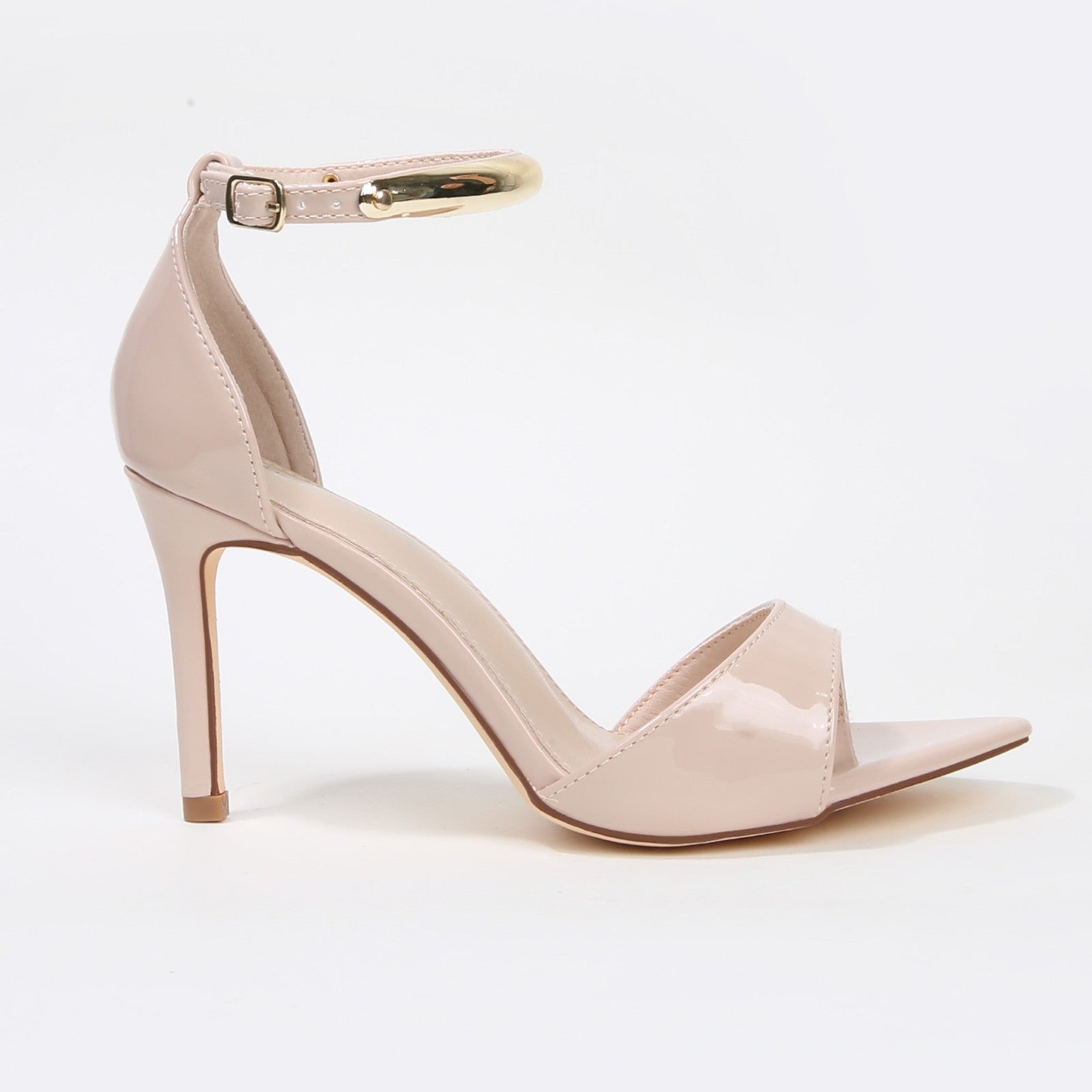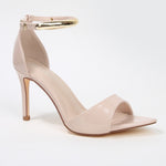 The Hunter stiletto sandal offers a perfect blend of modern elegance and professional poise. Featuring a sleek open-toe silhouette and a signature gold-tone metal bar ankle strap, this heel serves as a sophisticated statement piece. Ideal for the work office or formal evening events, it provides the secure stability and refined style required by the contemporary woman.