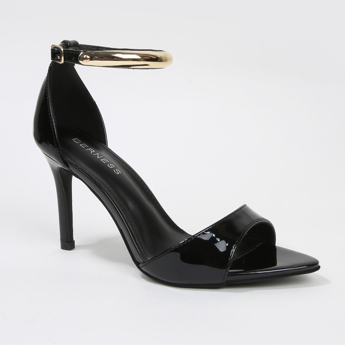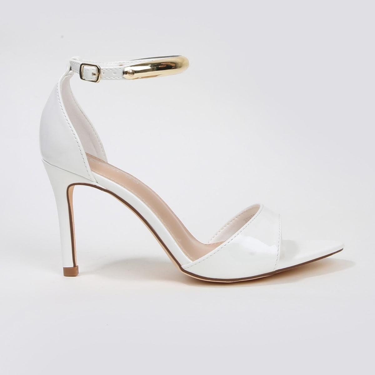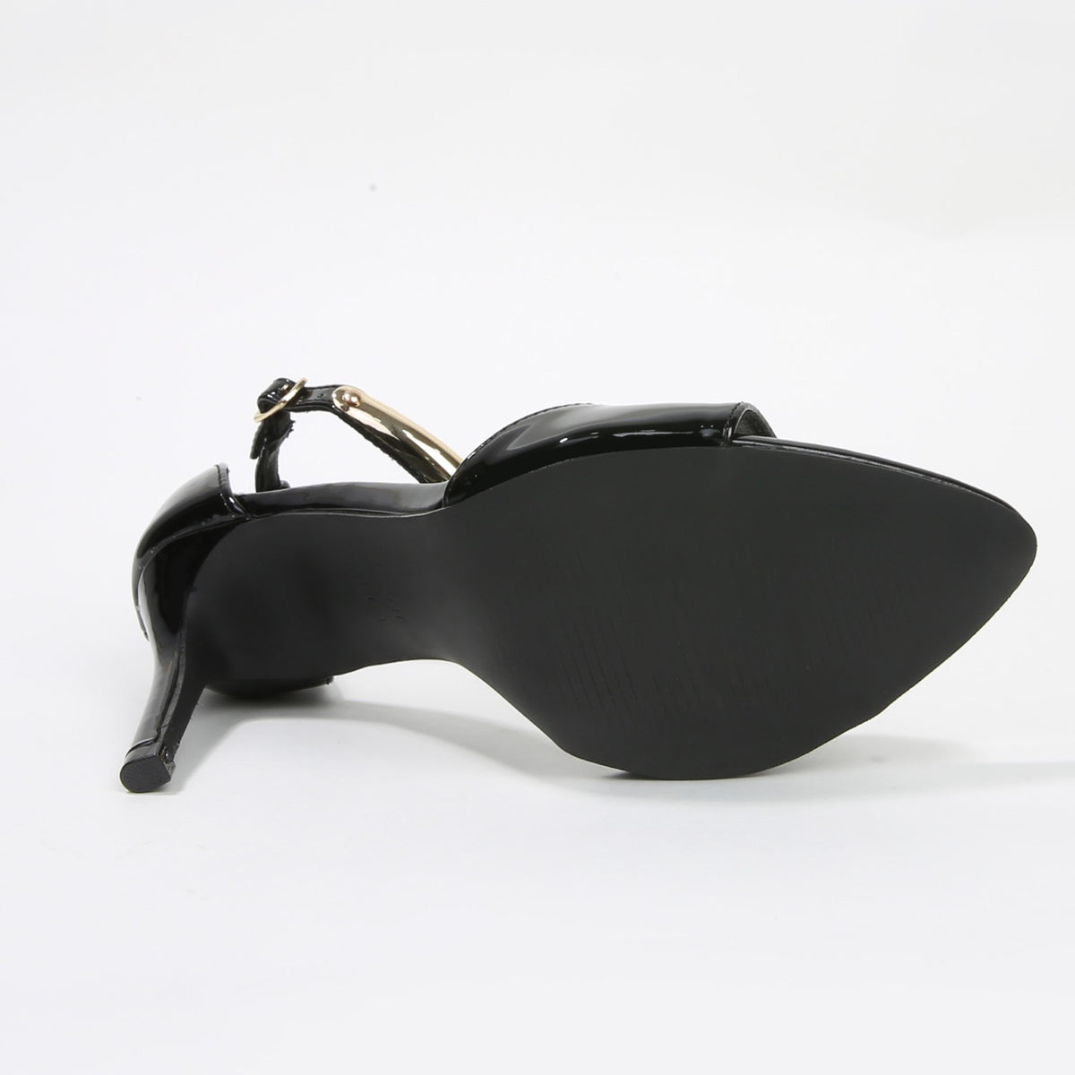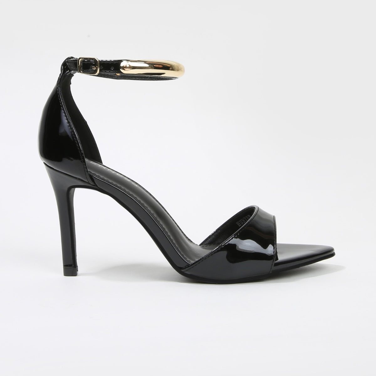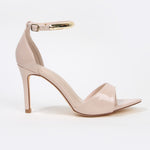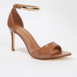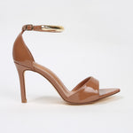 Hunter Stiletto Heels with Gold Metal Bar Ankle Strap