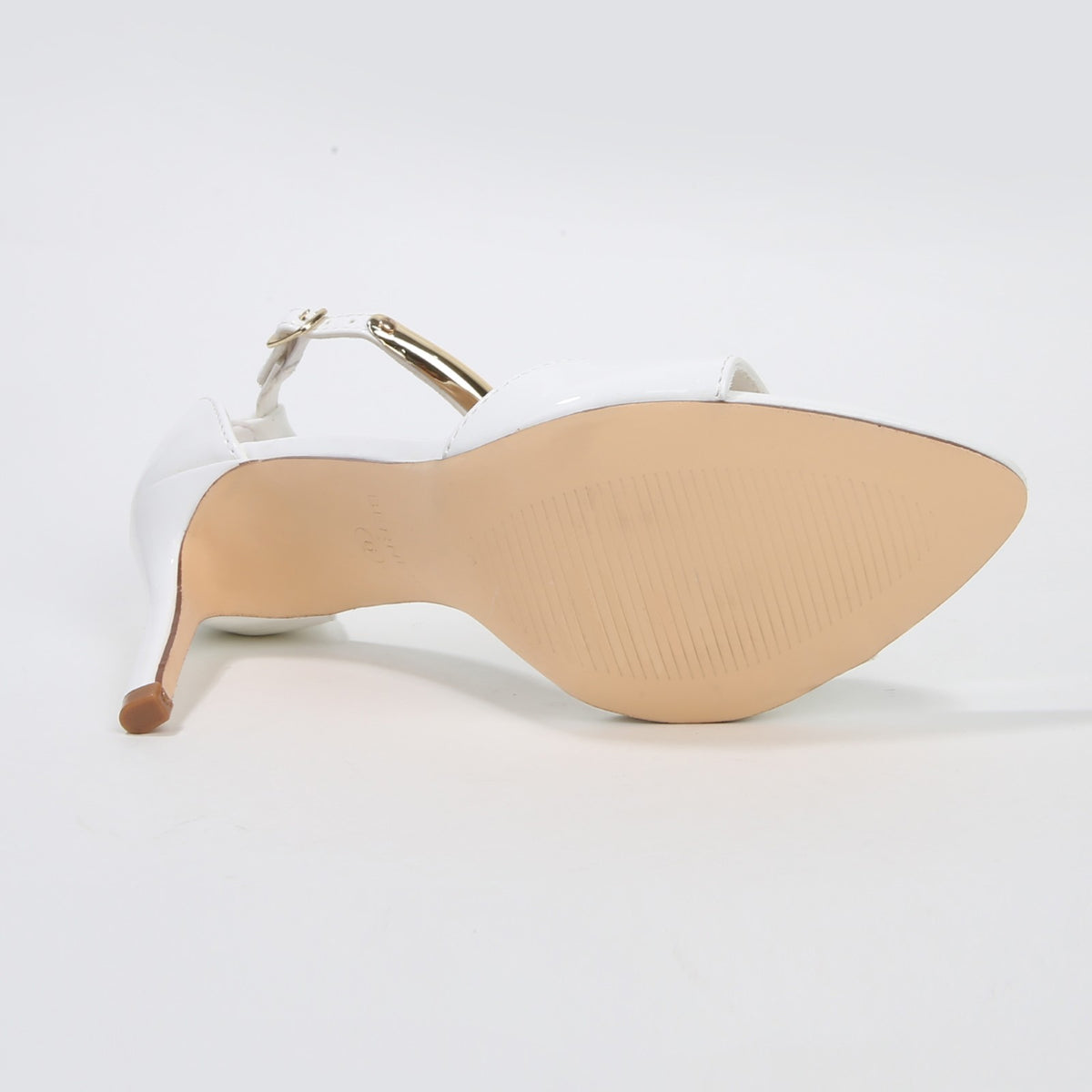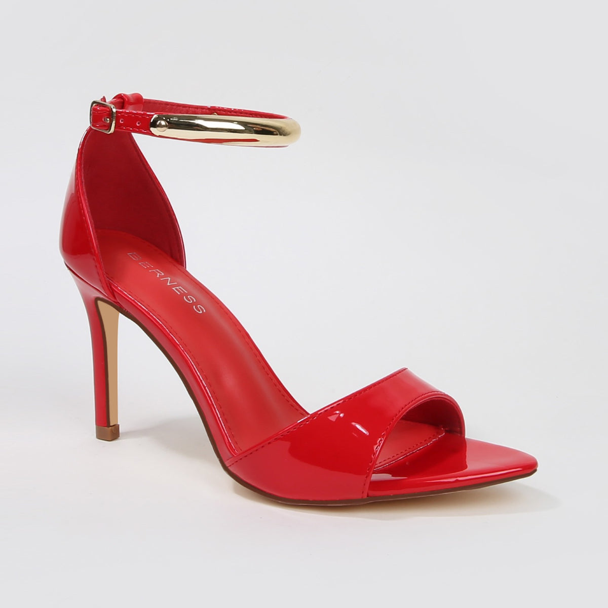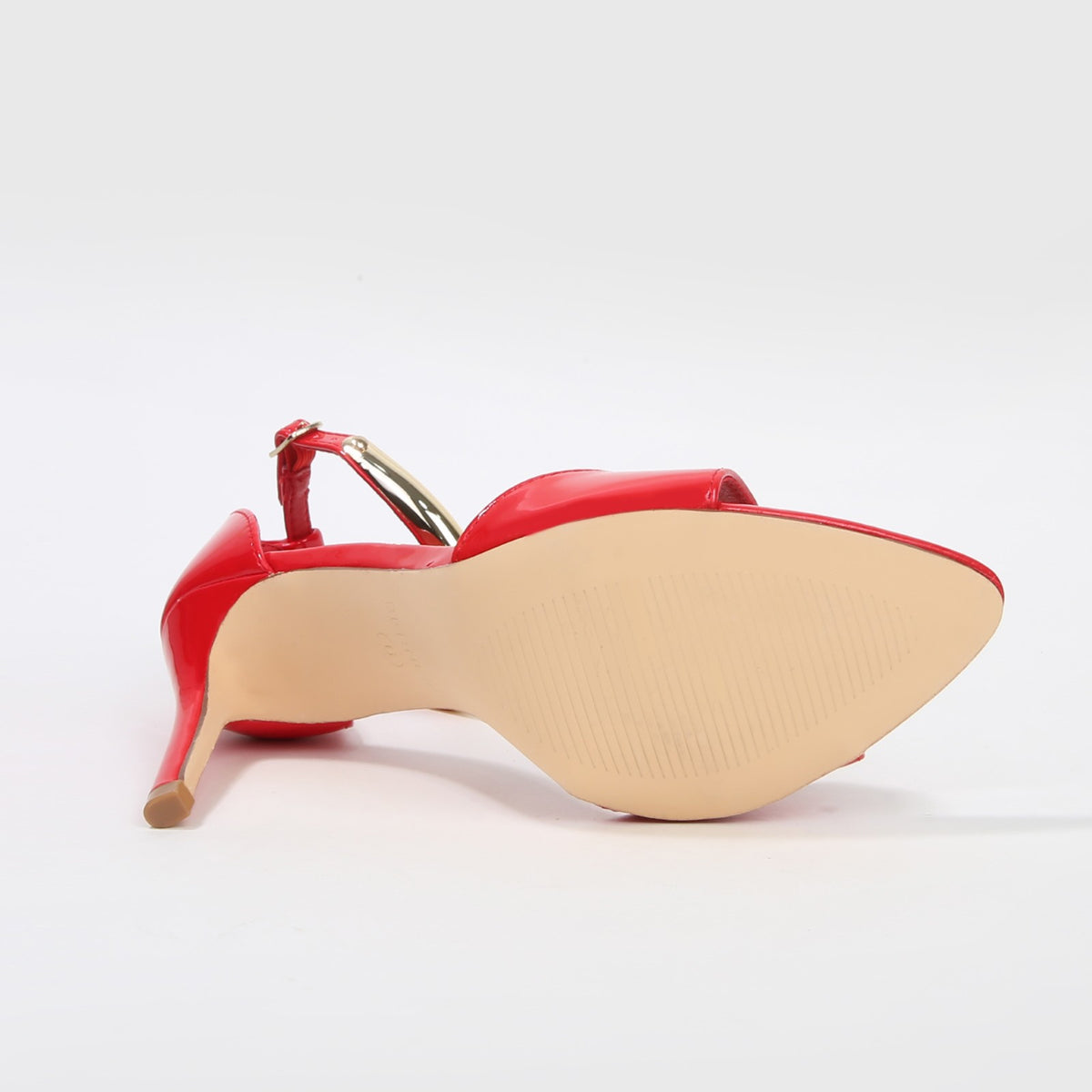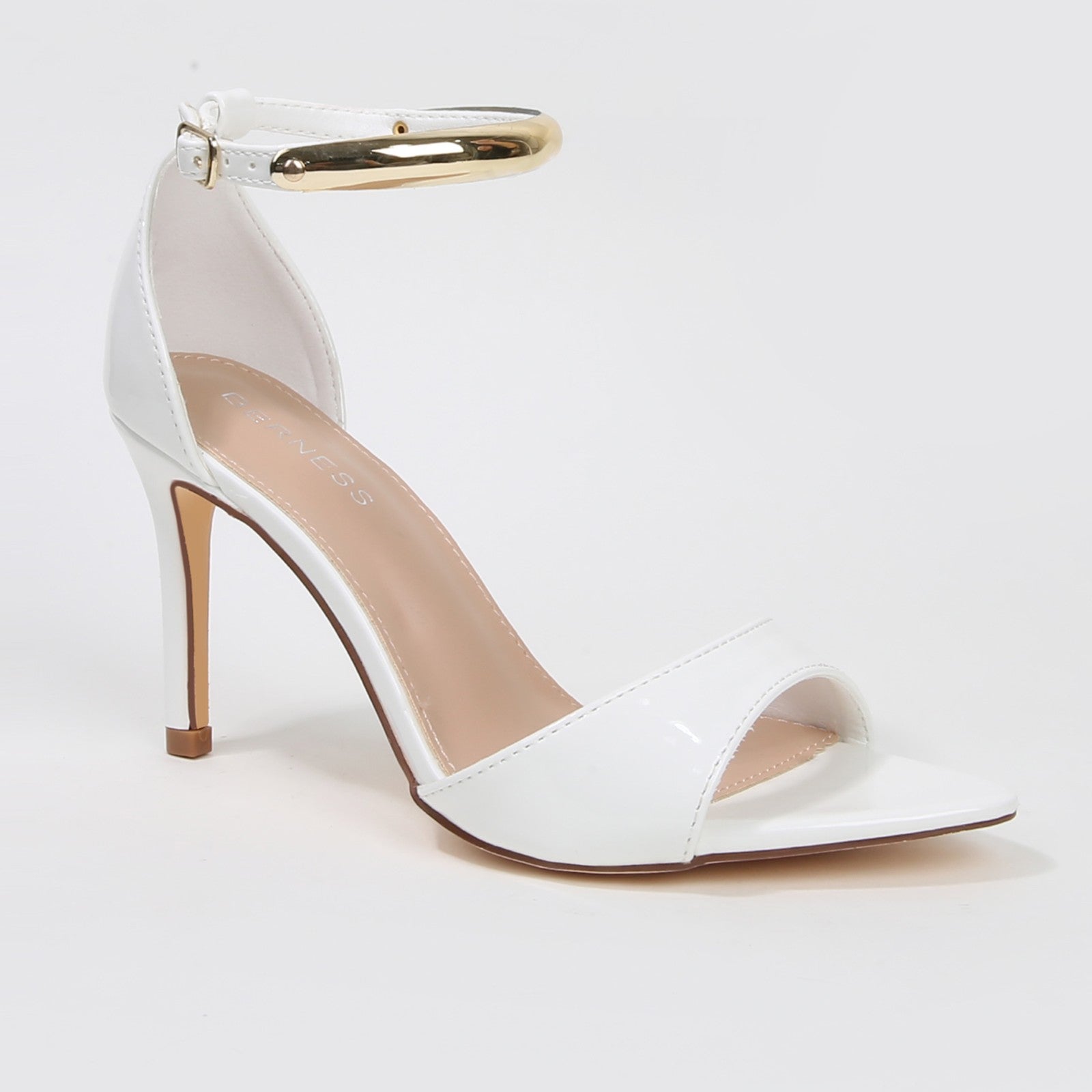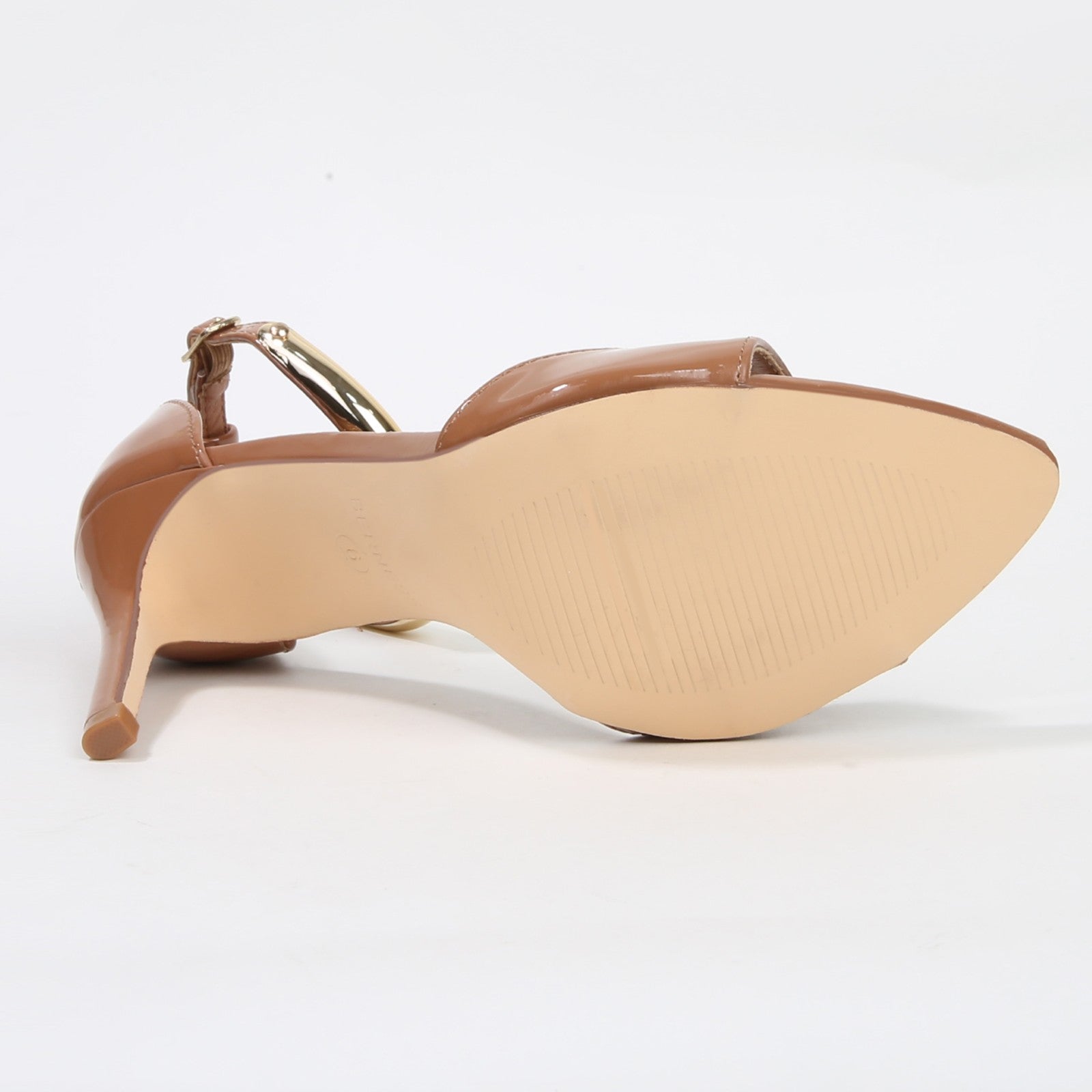 Hunter Stiletto Heels with Gold Metal Bar Ankle Strap