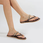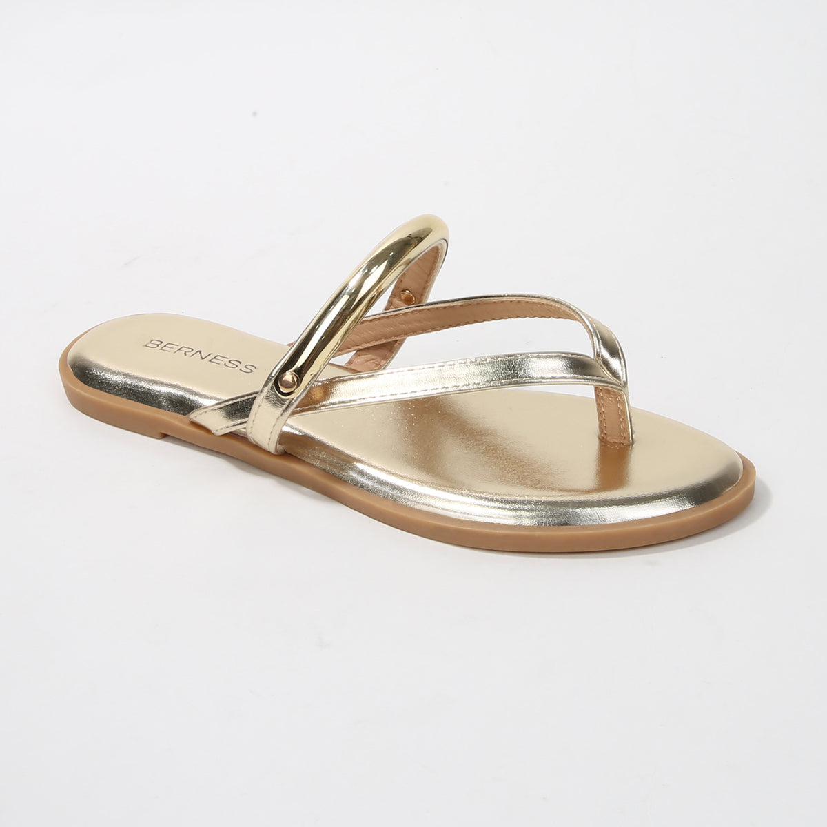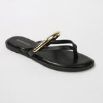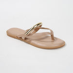Light, sleek, and modern! These thong sandals feature slim straps and a bold metallic ring accent that instantly elevates your looks. Perfect for everyday wear.