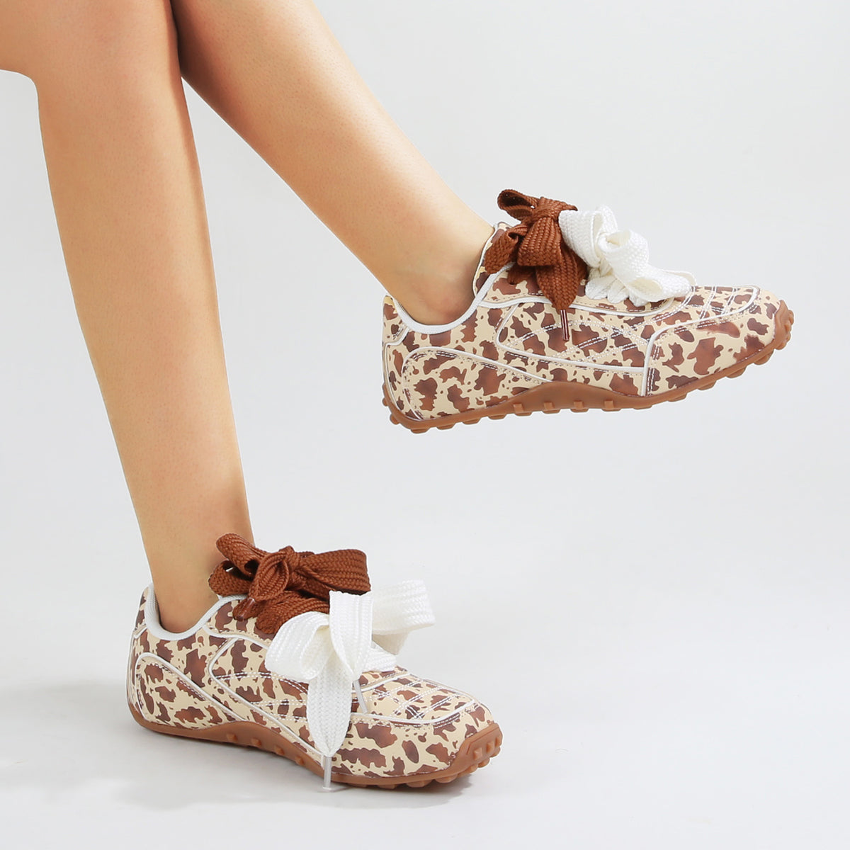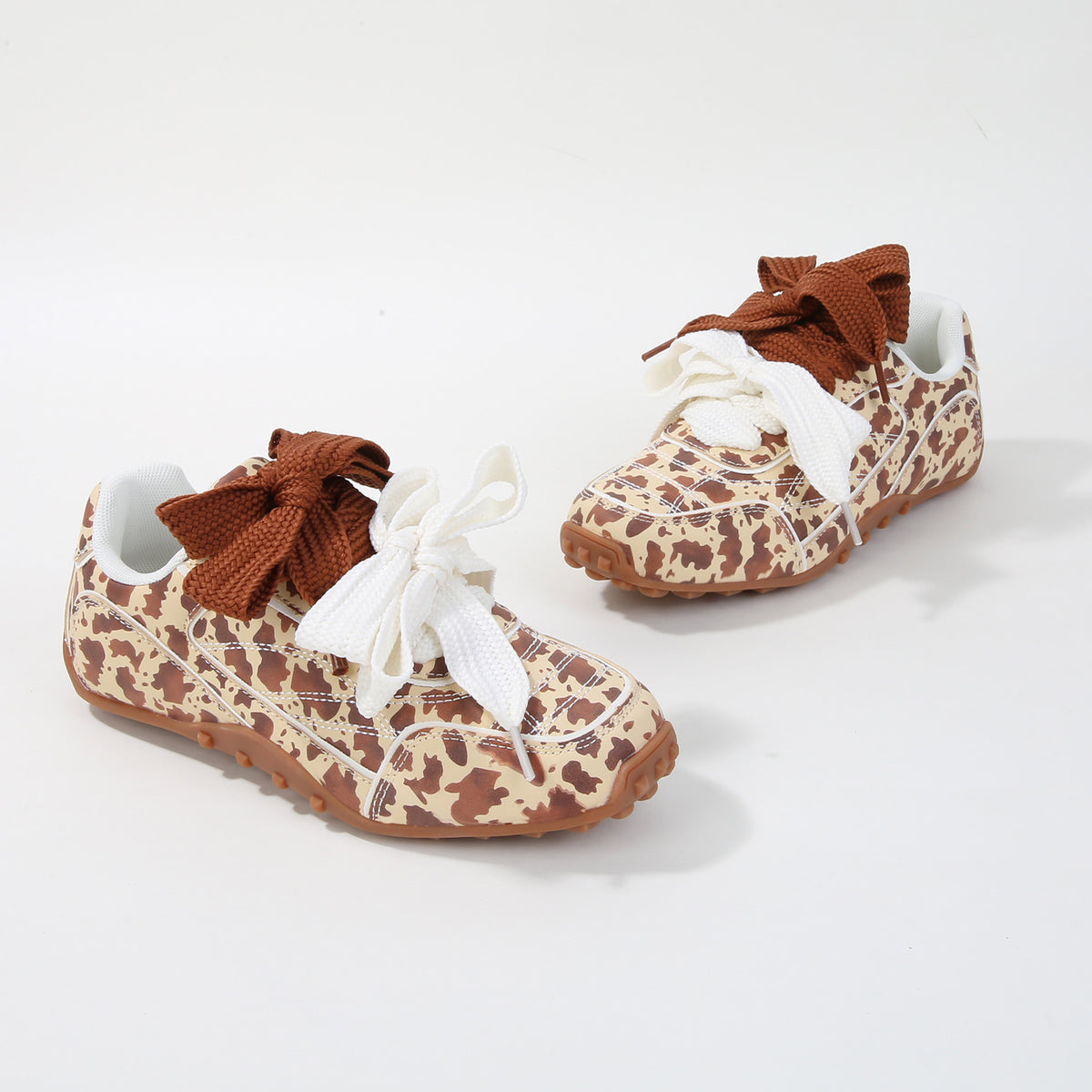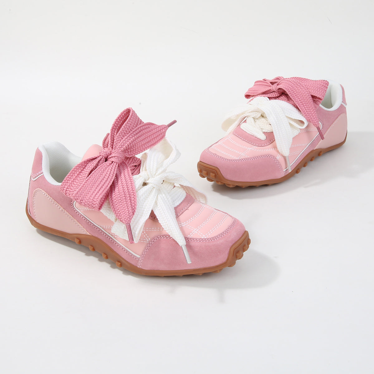 Playful meets practical. These lace-up sneakers feature contrast oversized laces and a rugged trail-style sole for standout personality and everyday traction. Perfect for adding unexpected charm to casual fits.