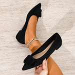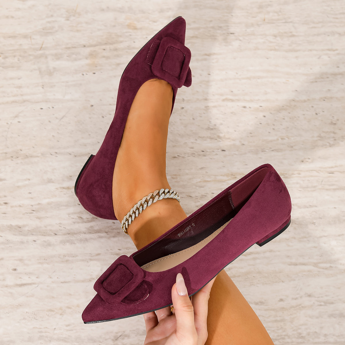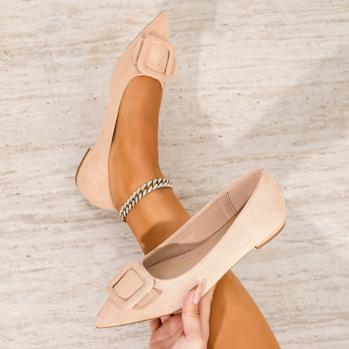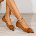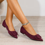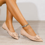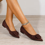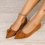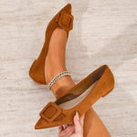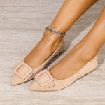 Effortlessly refined with a touch of softness, the Rhianna flats feature a sleek pointed toe and a plush faux suede finish, accented by a statement buckle for subtle elegance. Designed for everyday versatility, they transition seamlessly from workdays to casual outings, weekend brunches, and relaxed date nights while keeping your look polished and comfortable.