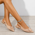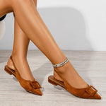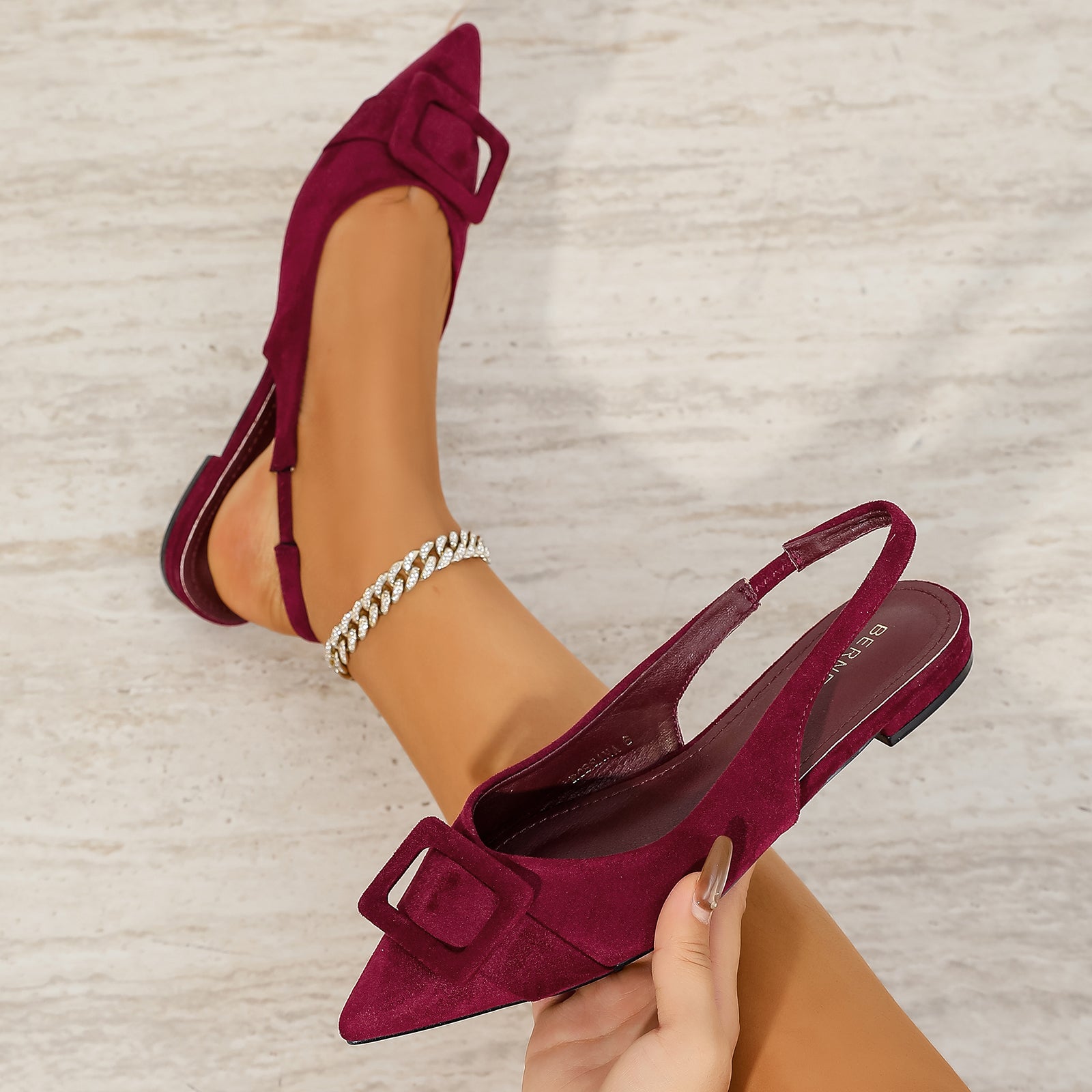 Soft suede texture and a refined pointed toe come together with an oversized buckle accent, creating an effortlessly polished flat that elevates any everyday look. Perfect for work, brunch dates, and relaxed chic outfits.