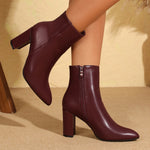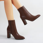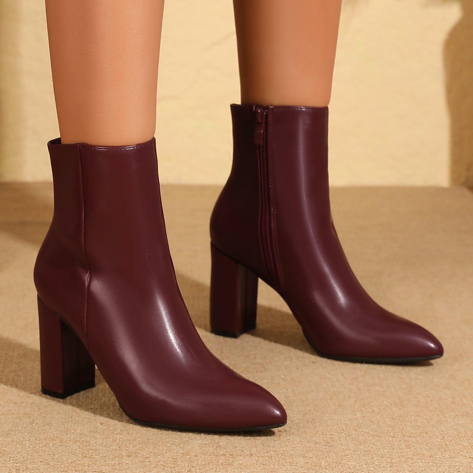 A refined pointed toe and clean minimalist silhouette bring effortless elegance to these ankle boots. Perfect for workdays, city outings, or evening plans—stylish, polished, and easy to wear.