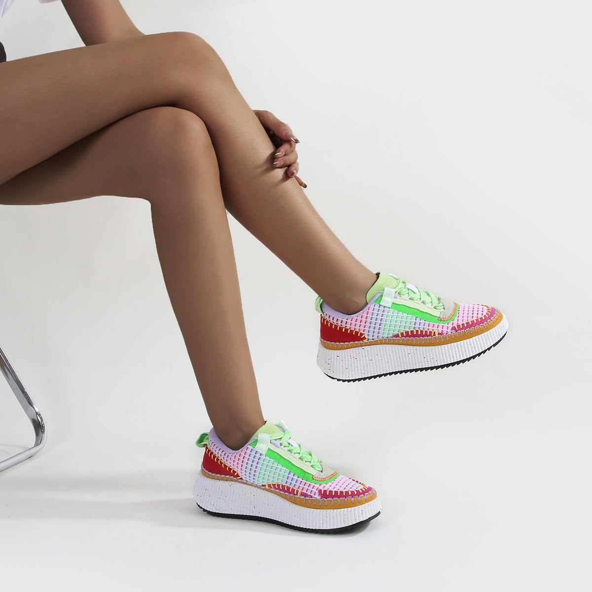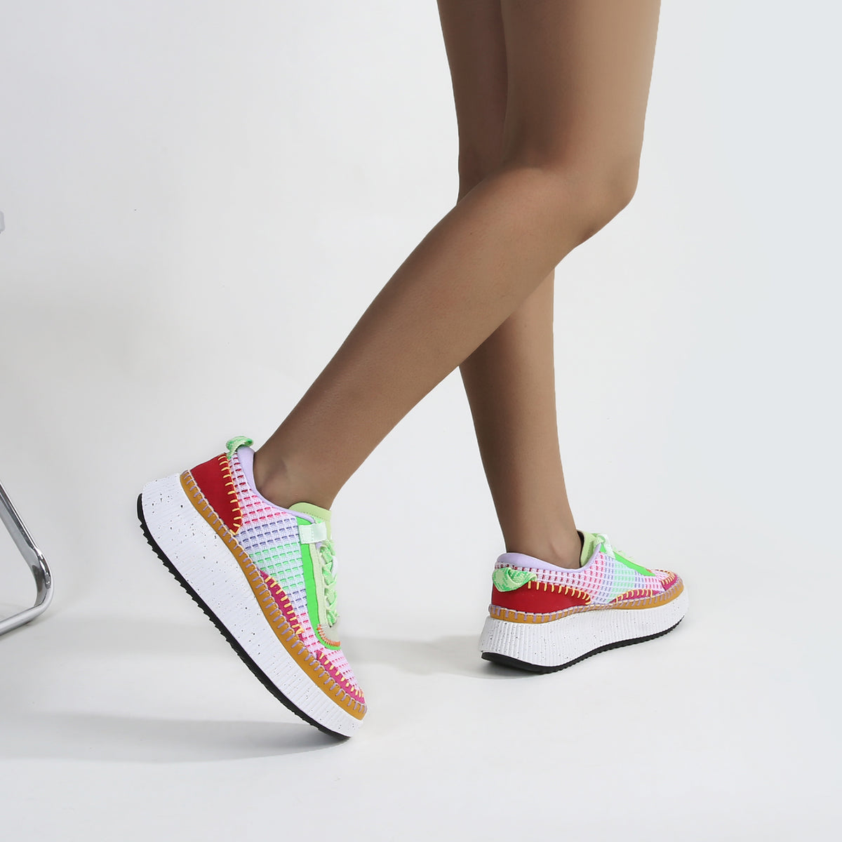 The Willow sneakers feature a unique woven upper with contrasting color accents, combining modern flair with everyday practicality. The chunky platform sole adds a fashionable lift while providing cushioning for all-day comfort. Whether you're running errands, heading to a casual lunch, or adding a bold twist to your everyday look, the Willow sneakers deliver both comfort and style.